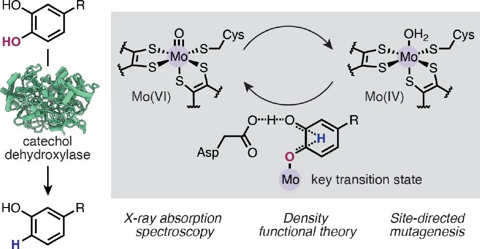 132. Yang, Jing; Bae, Minwoo; Kc, Khadanand; Dong, Xueyang; Nguyen, Quyen D.; Mengell, Joshua; Balskus, Emily P.; Kirk, Martin L. Active Site Structure and Mechanism of a Molybdenum Catechol Dehydroxylase. Journal of the American Chemical Society 2026, 148 (14), 14877-14888. DOI: 10.1021/jacs.5c20654.